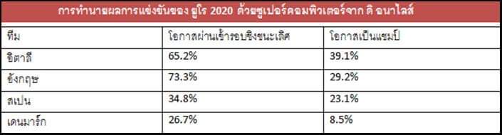 ผลจากการวิเคราะห์บอลยูโร 2020 ด้วยการใช้ซุปเปอร์คอมพิวเตอร์
